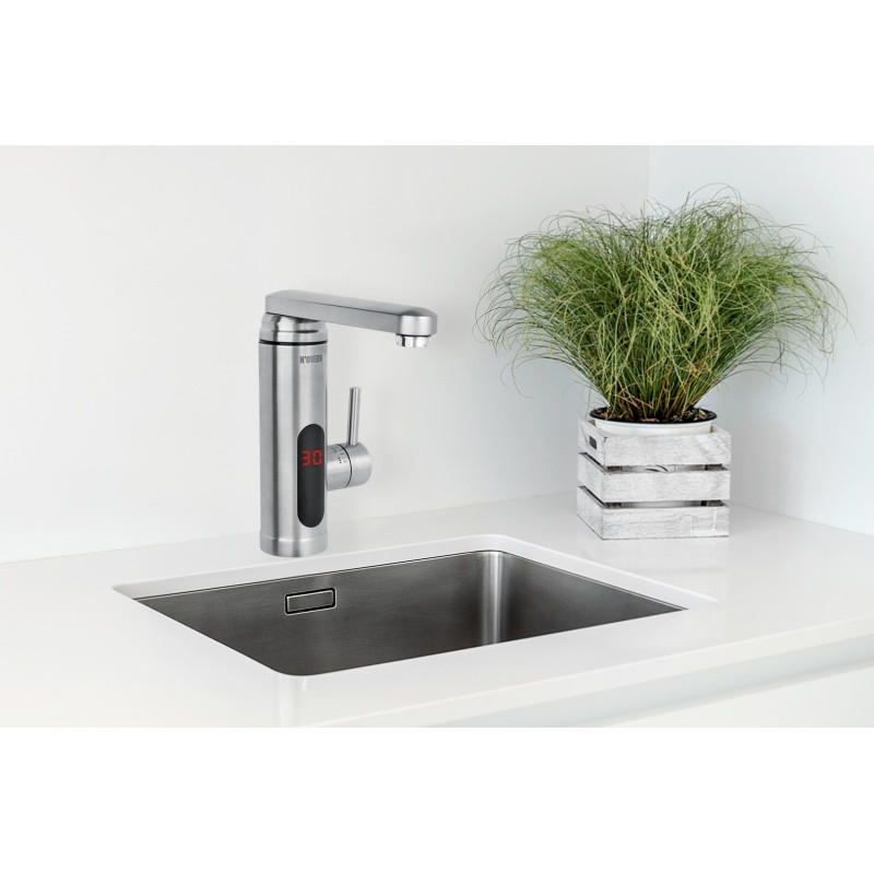 FeaturesMaterial: Stainless steelBuilt-in display: LEDMounting: CountertopInstantaneous heating element: YesInternational Protection (IP) code: IPX4Pr..